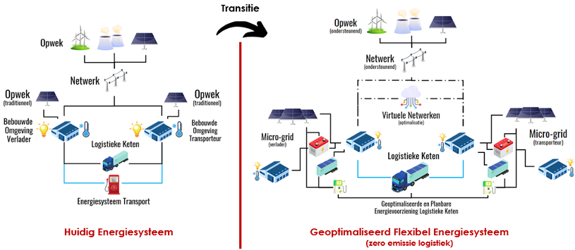 In logistieke ketens wordt een SMART-laadinfrastructuur ontwikkeld die laadpunten aanstuurt op basis van realtime en voorspelde data vanuit EMS en FMS. Daarnaast wordt een energie- en routingtool ingezet die piekbelasting voorkomt en de laadvraag spreidt. Ook wordt gewerkt aan Vehicle2X, waarbij voertuigen en trailers onderdeel worden van het energiesysteem, onder andere via bidirectioneel laden en zonnepanelen op trailerdaken.