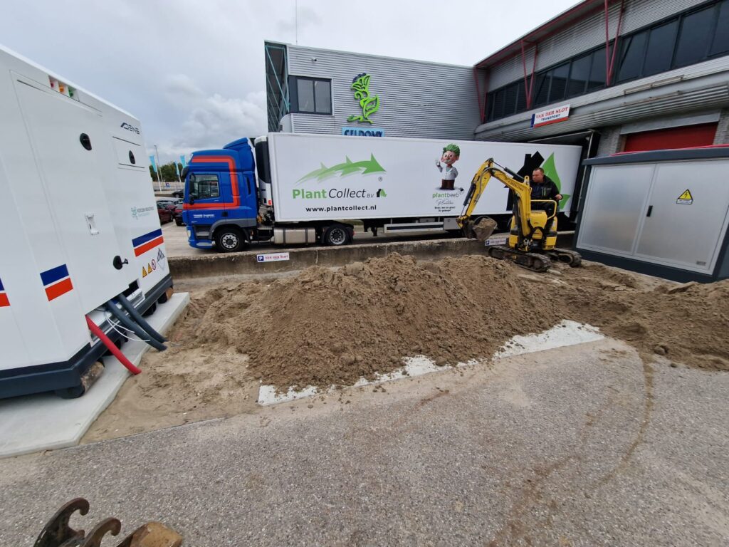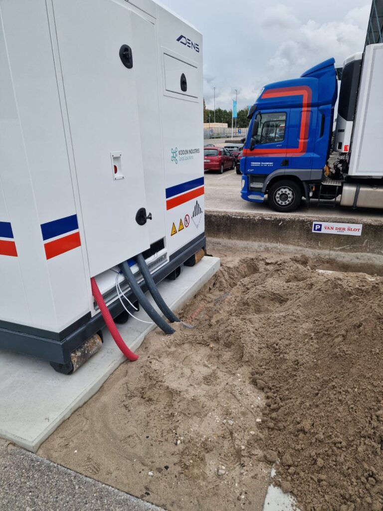 Bij Van der Slot in Honselersdijk wordt gewerkt aan een belangrijk onderdeel van de Zero Emissie Corridor. Dit project laat zien hoe logistieke bedrijven hun energievoorziening slimmer en duurzamer kunnen inrichten. Op het terrein worden meerdere innovaties gecombineerd: een grote 1.500 kWh batterij, nieuwe DC-laders en zonnepanelen. Samen vormen deze onderdelen een geïntegreerd systeem dat bijdraagt aan de overgang naar zero-emissie transport.